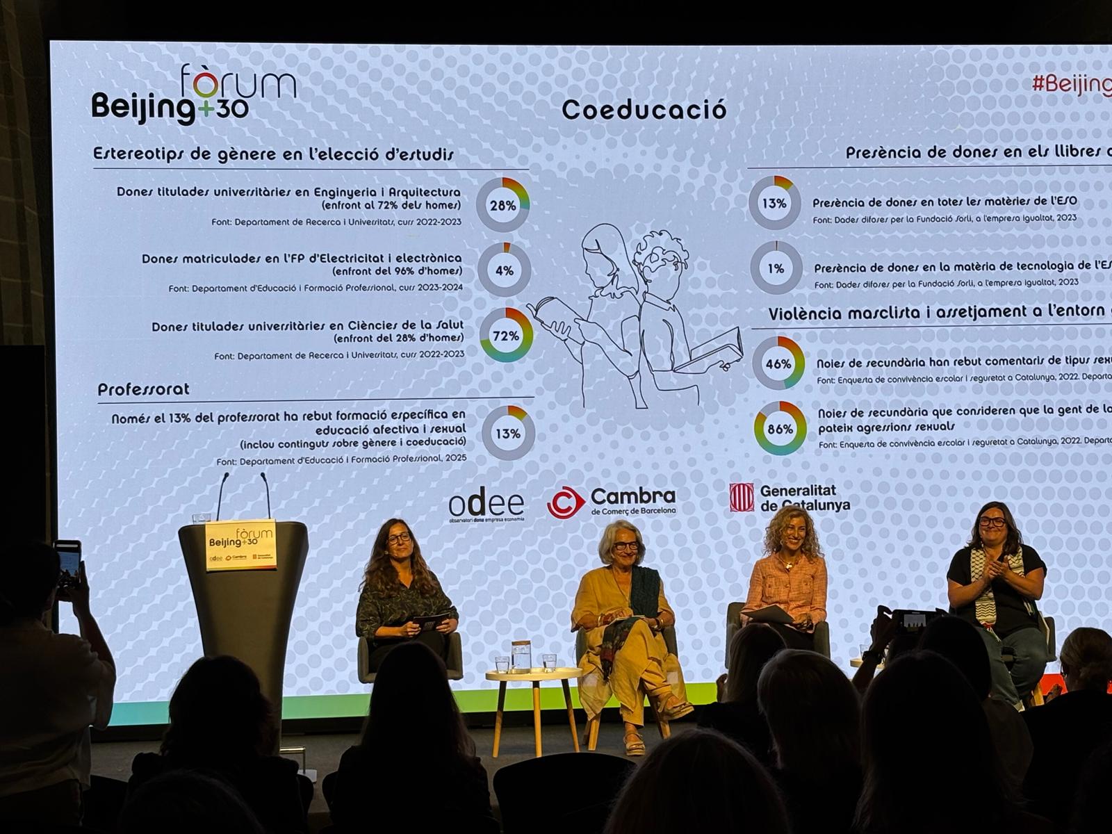 📅 El passat 18 de setembre, la nostra directora Blanca Moreno va participar a la taula rodona “Coeducar és transformar: herències i reptes del llegat de Beijing”, en el marc del Fòrum Beijing+30, una jornada clau per reflexionar sobre els avenços i els reptes pendents en matèria d’igualtat de gènere, trenta anys després de la històrica IV Conferència Mundial sobre la Dona (Beijing).